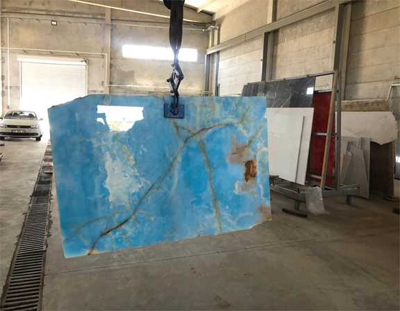 Oniks mermeri diğer mermer çeşitlerinden ayıran en önemli özellik yarı saydam yapısıdır. Klasik mermer çeşitleri ışığı geçirmemesine rağmen cam yapıdaki oniks ışığı geçirir. Bu özelliği nedeniyle oniks taşı kullanılarak tasarlanan dekorasyonlar oldukça şık durmaktadır. Oniks mermer çeşitleri çok farklı renklerde ve kristalize yapılarda olabilir.